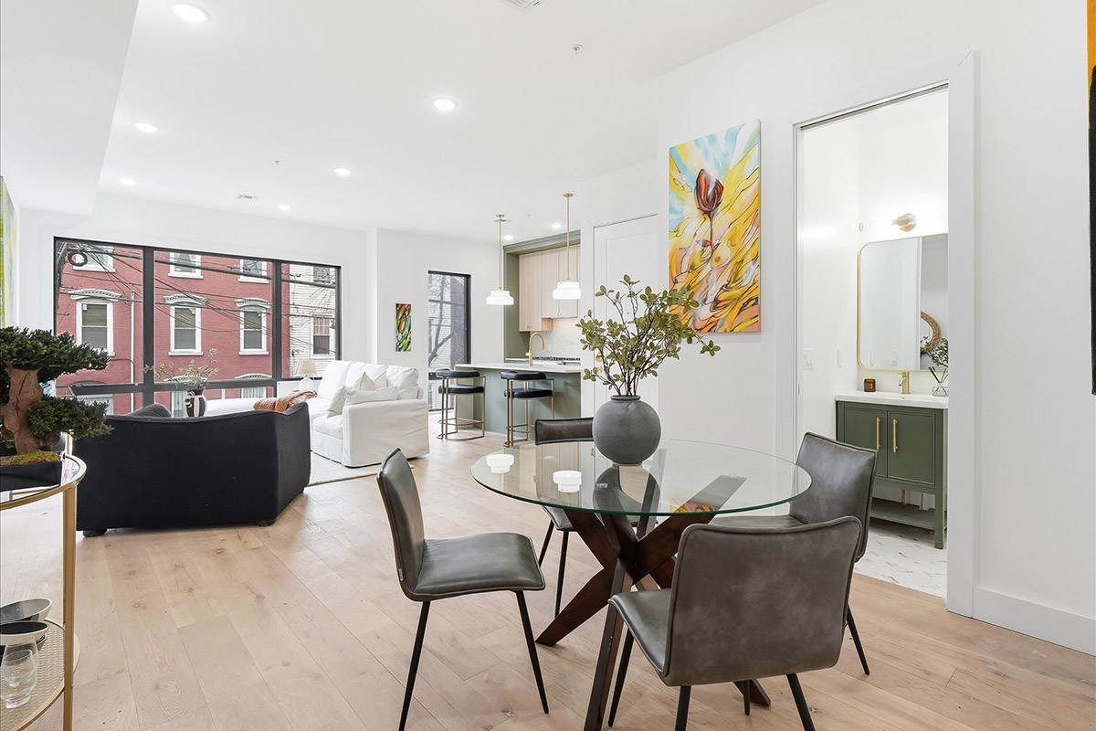 Step into elevated design and modern convenience with these three ground up new construction 3 bedroom plus office/den, 2.5 bath units with private outdoor space in the heart of Jersey City Heights. Set on Webster Avenue with a striking white brick exterior, this home is bathed in natural light, highlighting a spacious open-concept layout with premium Legno Bastone wide-plank hardwood flooring and high-end finishes.